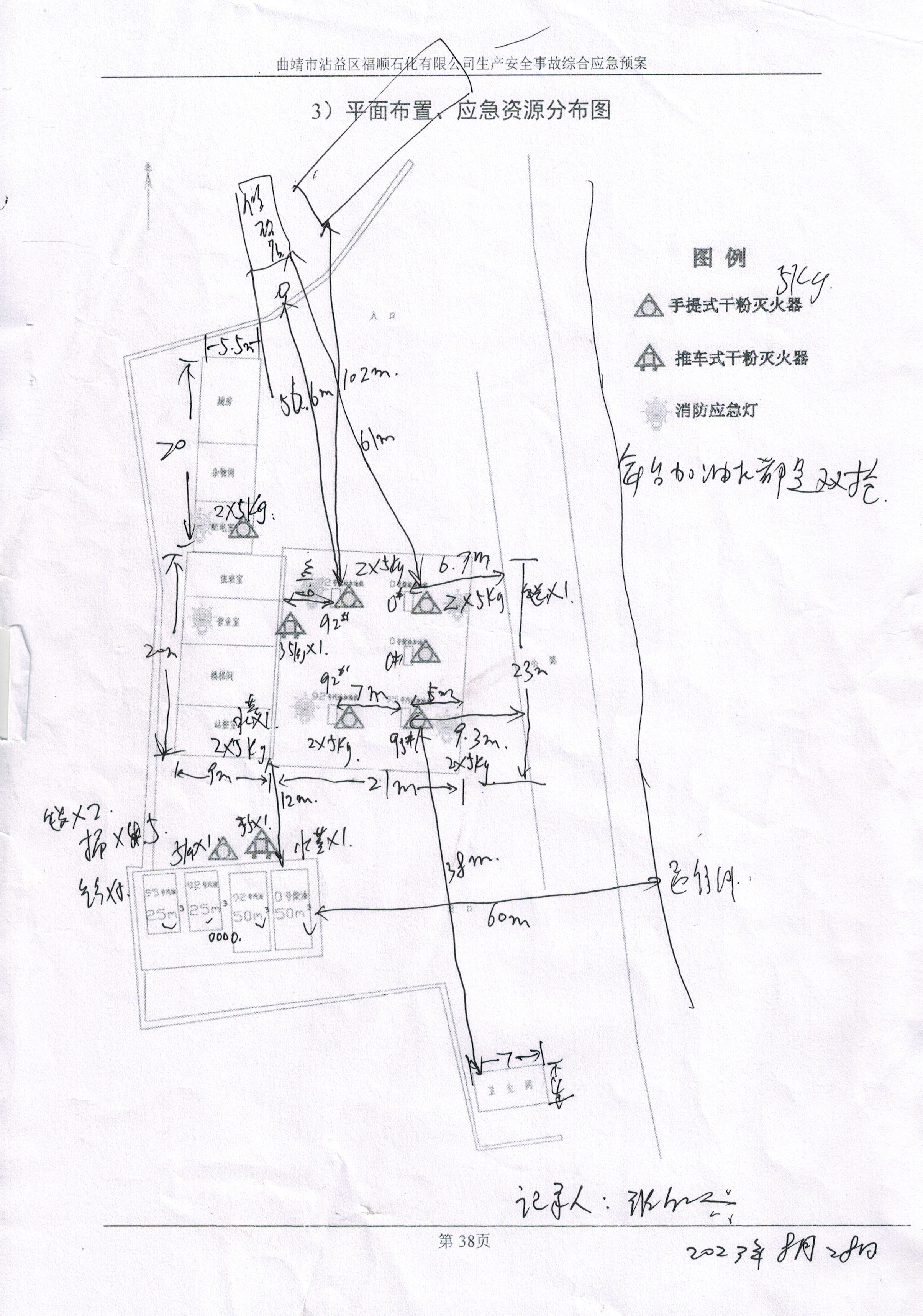 隱患:(1)卸油口開關(guān)閥門使用的扳手不符合防爆要求。(2)卸油規(guī)程牌未進行接地。(3)油罐區(qū)油罐操作井蓋上的油罐、油品標(biāo)識老化褪色,不清晰。(4)加油機加油槍未做編號管理。(5)配電室內(nèi)的加油機配電箱、水泵配電箱的箱體未做接地保護。 | ||||||||
